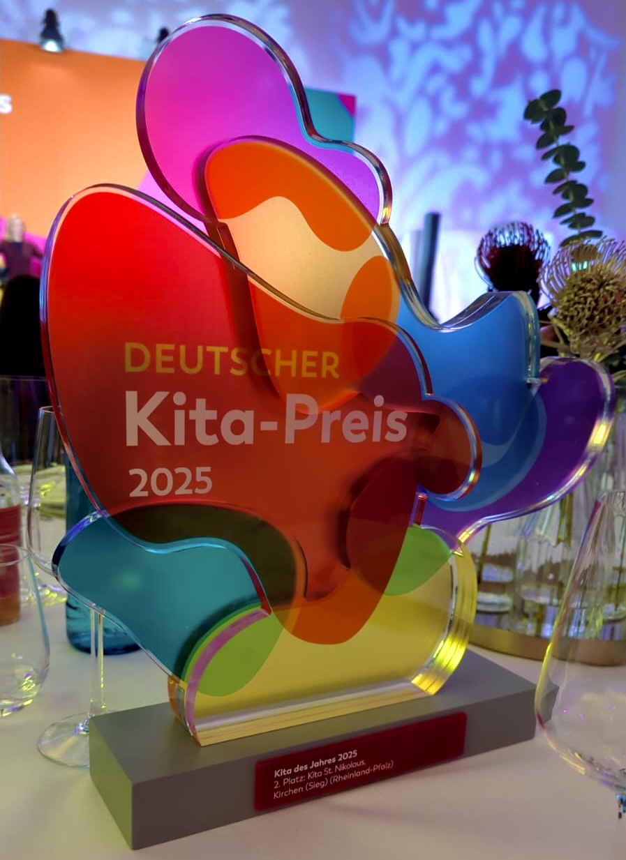 Nach einem rund zehnmonatigen Bewerbungsprozess durften wir am 27. November dankbar und glücklich in Berlin den Pokal für den zweiten Platz beim deutschen Kitapreis in Empfang nehmen.