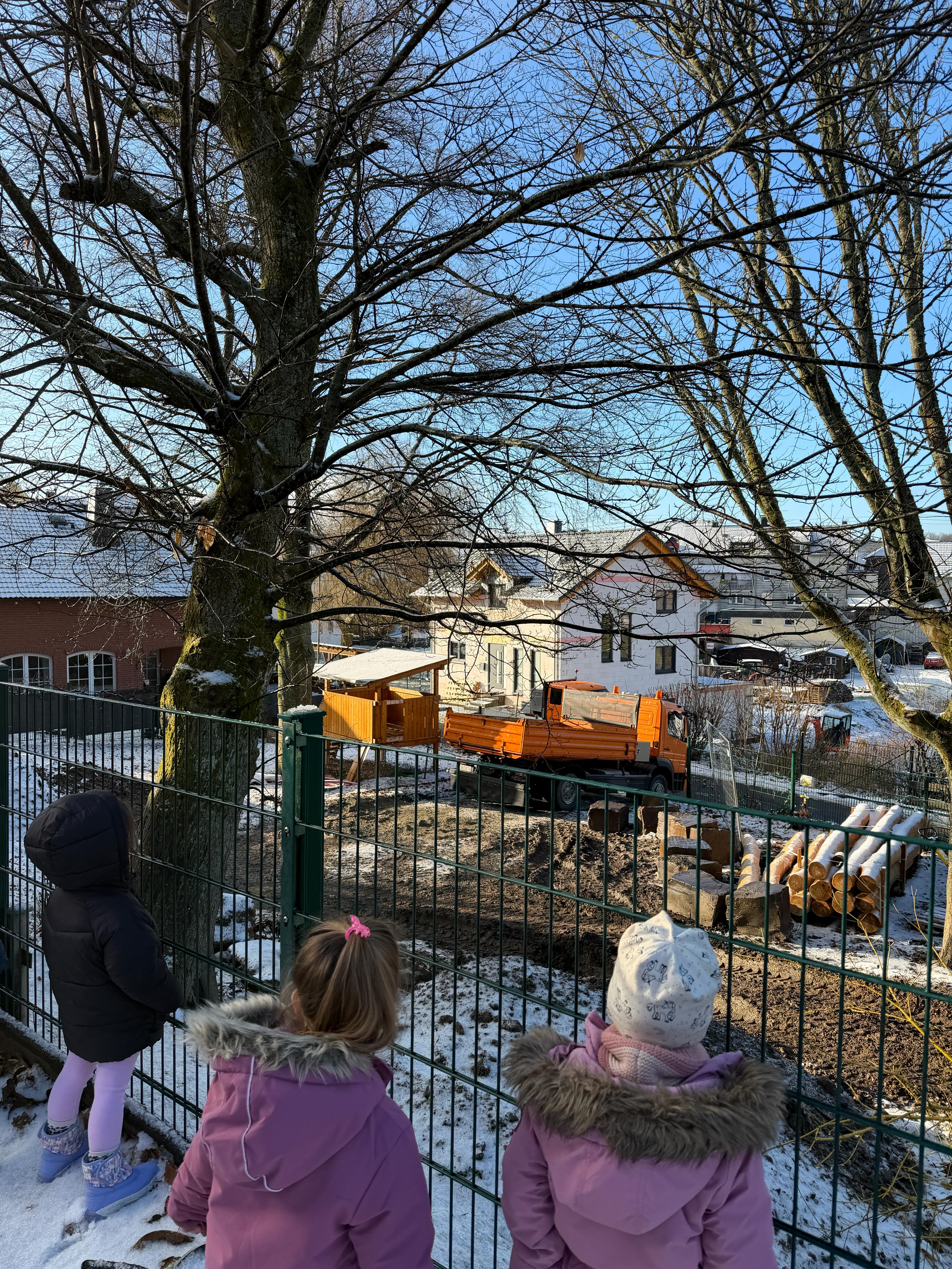 Die Umbauarbeiten auf unserem Außengelände haben begonnen. Gespannt konnten wir bisher gemeinsam mit den Kindern die ersten Veränderungen beobachten. Der Einsatz von Baufahrzeugen und unterschiedlichen Werkzeugen ist schon jetzt ein tägliches Highlight für viele.